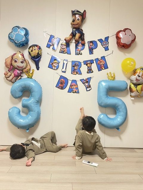 ツイート 2025.11.27Thu 誕生日☆ 10月生まれの次男に11月生まれの長男、そして12月にはクリスマス、、 最近兄弟でドハマり中のパウパトロールのおもちゃが順調に増えています(笑) それぞれ誕生日にはグランピングや遊園地に行ったりたくさん遊びました☆ 誕生日が近いので記念写真はいっぺんに済ませます 良い感じに撮れるのは最初だけで最終的にはこうなります(笑) 世志翔